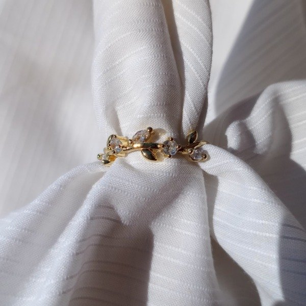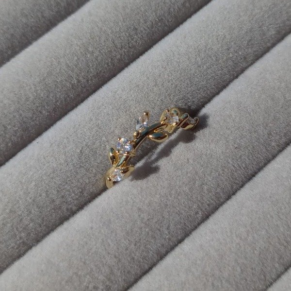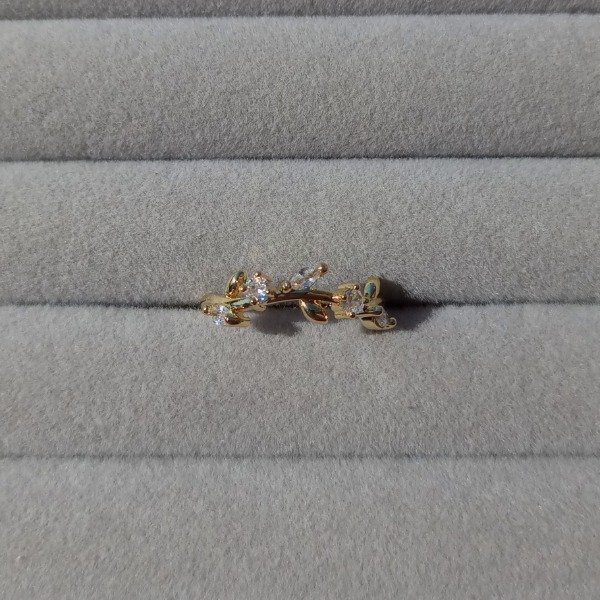 Anillo de cobre enchapado en oro con zirconitas de distintos colores. Los colores pueden variar por la resolución de la pantalla.