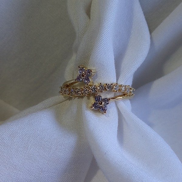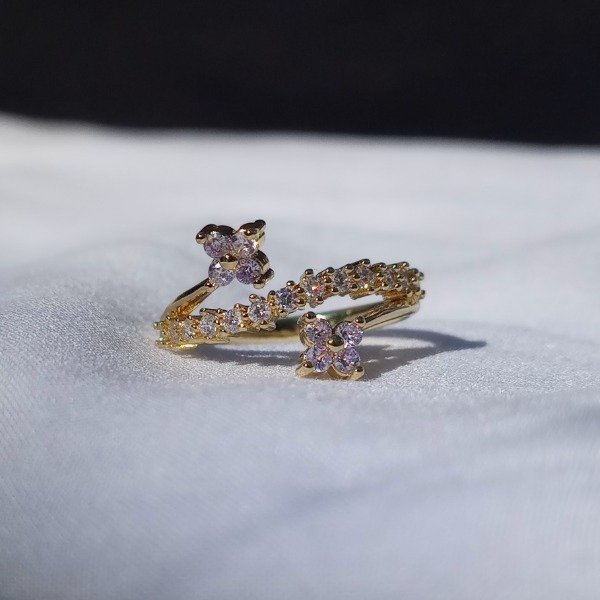 Anillo de cobre enchapado en oro con zirconitas de distintos colores. Los colores pueden variar por la resolución de la pantalla.